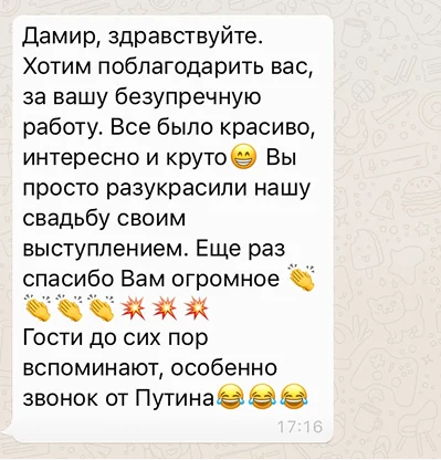 Дамир Гудвин — фокусник и иллюзионист, превращающий любое событие в праздник, полный восторга и магии.