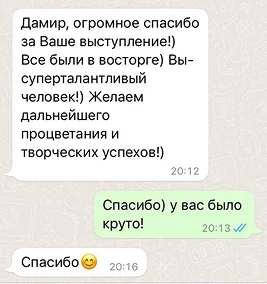 “Восторженные лица, смех восхищение и слова благодарности моих зрителей - это лучшая награда для меня, как артиста.”